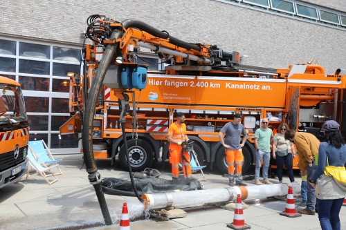 Wir laden alle Interessierten zu Führungen durch die Betriebsstation ein. Außerdem stellen wir Betriebsfahrzeuge der Kanalreinigung vor. Nutzen Sie die Gelegenheit für Einblicke in die Arbeit der Münchner Stadtentwässerung. Entdecken Sie wichtige, eher oft im Verborgenen liegende Teile der Infrastruktur, die unsere Stadt am Laufen hält. Erfahren Sie interessante Details über den Kanalbetrieb.